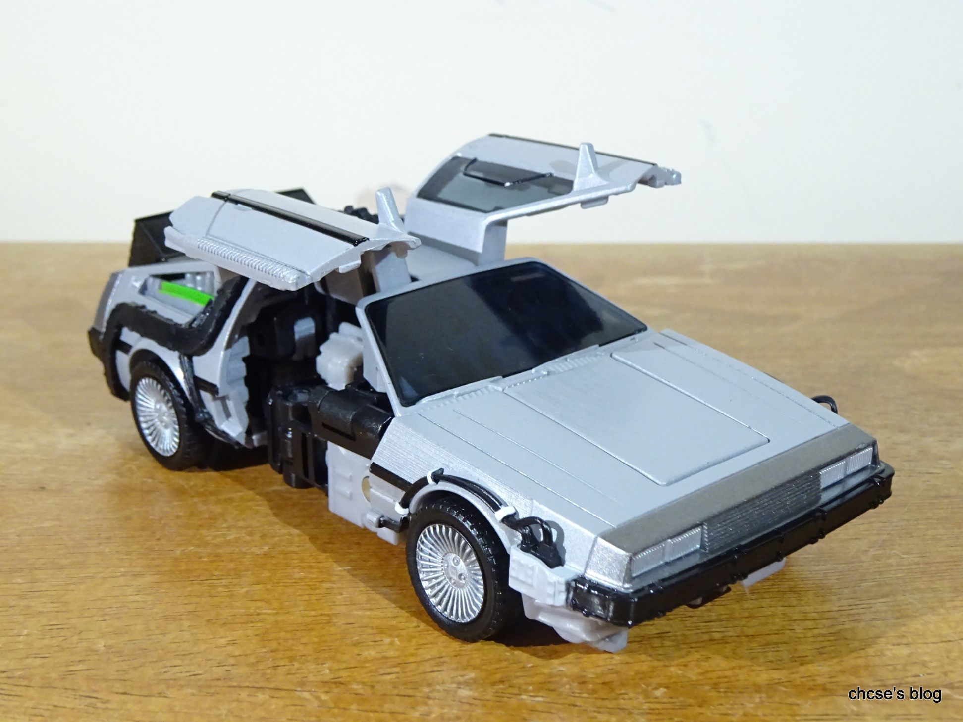 Gigawatt transforms into a silver DMC DeLorean, an iconic vehicle thanks to the Back to the Future movies.