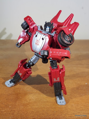 Sideswipe is a solid figure. The vehicle mode is really nice, it perfectly captures the alien but sleek and speedy nature of the vehicle. The robot mode is also an improvement over the original figure from over a decade ago, with better proportions, although this figure is not without its own set of flaws.