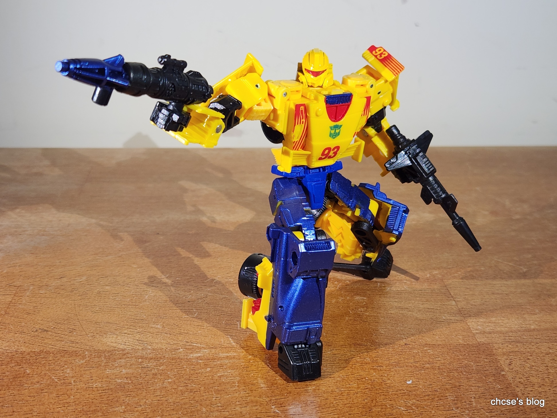 This is a nice alternate mode, and the blue has an amazing shade of metallic blue that really makes the figure pop with the yellow.